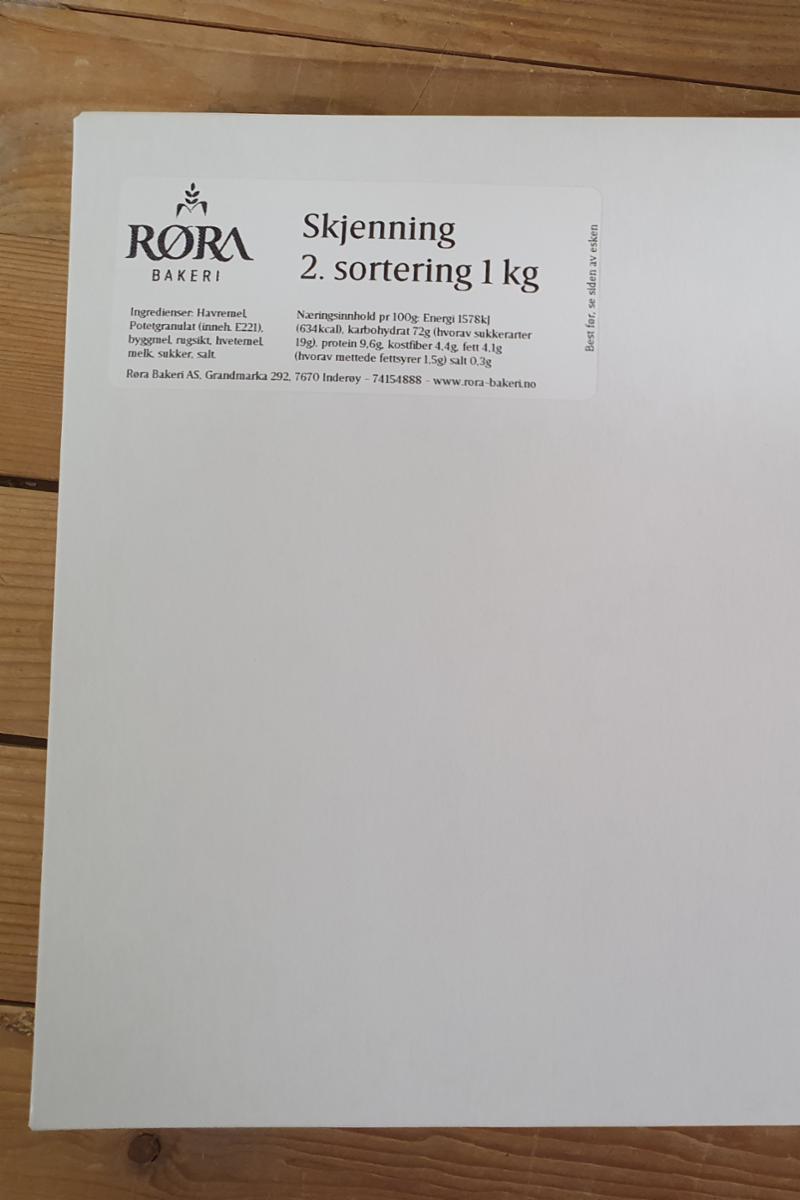 Det kan være knekte hjørner, for stor variasjon i farge, noen hull eller flekker. Smaken skal det imidlertid ikke være noe galt med, men det kan være større variasjon av lettere eller mere stekt gjennom pakkent også, enn hva vi pakker som beste kvalitet.